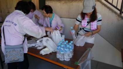 避難所開設の際の受付、炊き出しと給水の訓練も行われ、参加者に配られました。