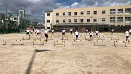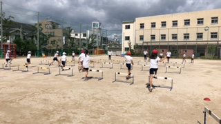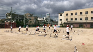小刻みに走り、リード足とぬき足を意識してとびます。