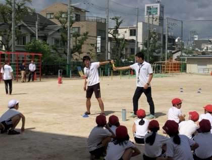 バトンをもらう人は、走りながらバトンをもらうのに苦戦しています!