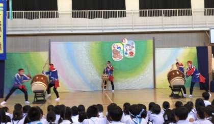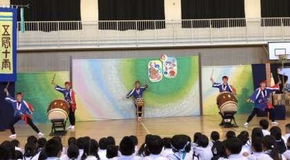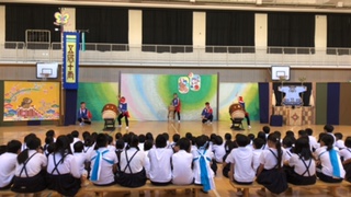 和太鼓の流れるうちあわせの演奏に、みんな、真剣に観ています。