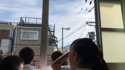 窓から、校庭から、雲の様子を見て、明日の天気を予想します。