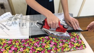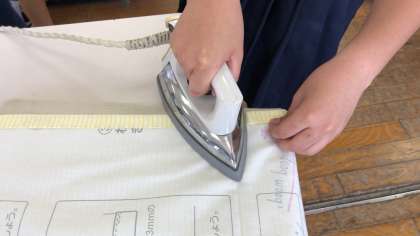 エプロン作りに入り、今日は端を三つ折りにしてアイロンかけをしました。