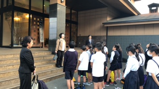 開舎式、お世話になるホテルの方に児童代表があいさつをしました。