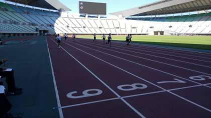 東成区のみんなと一緒に、 100m走、全力疾走!