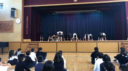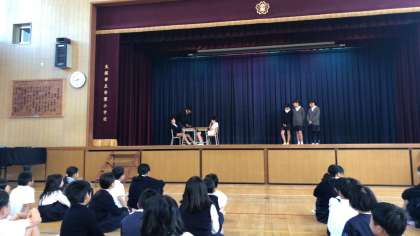 児童集会で健康委員会が劇を通して、姿勢を正しくすることの大切さを伝えました。