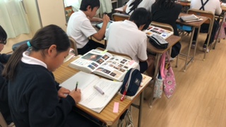 図書での調べ学習は、図書館補助員の先生に協力していただきました。