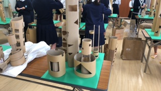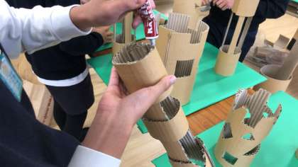 カネダインを塔の下につけ、台紙へゆっくりおさえて固定します。