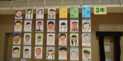 絵画は、自分の面白い顔などをタブレットで撮影して、忠実に表現しました。