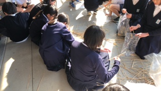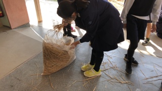 わらをゴミ袋にいれて集め、そちらもさわって楽しみました。