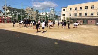 低学年コートと高学年コートの2つに分けて行う予定でしたが、集まった人数を上手に分け、臨機応変に対応していました。