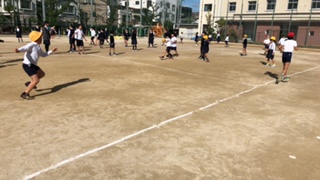 しかし、みんなで協力して、コートをかき、参加者を分けて、ドッジボールをしました。