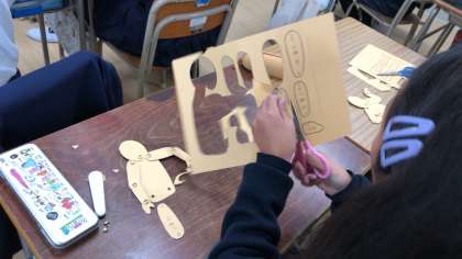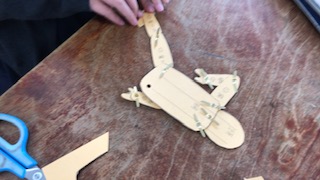頭、体、手足の型を切り取り、穴を開けてピンで止めて完成。