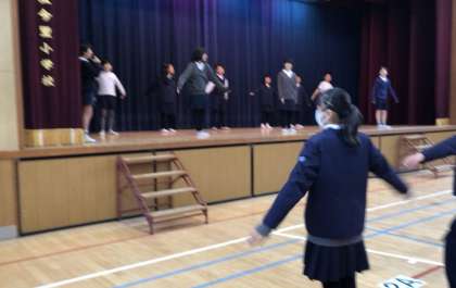 前に立った健康委員会を見ながら、全校で姿勢体操をしました。