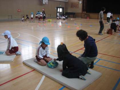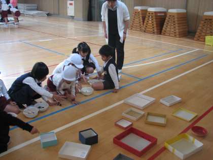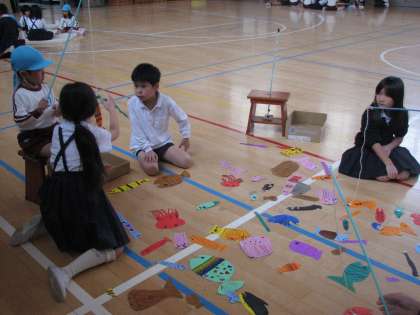 10月31日(金)2時限目に2年生の児童が今里幼稚園の子ども達と交流会をしました。講堂には、2年生がいろいろな遊びを体験できるようにコーナーをたくさん用意していました。遊びが始まると、2年生は、幼稚園の子ども達にそれぞれの遊び方を優しく教えていました。幼稚園の子ども達もとても楽しそうに遊んでいて、心温まる交流会になりました。