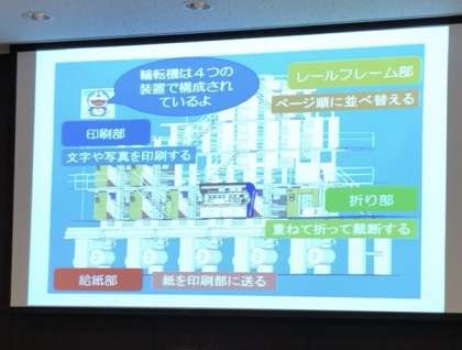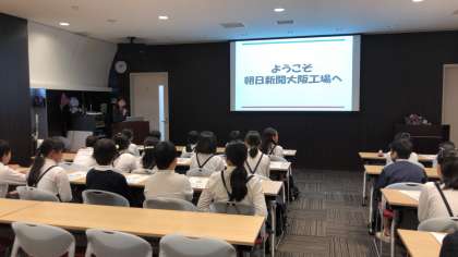 朝日新聞ができたころから、今現在どうやって新聞が作られているか、映像を見て学んでいます。