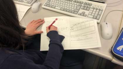 ワークシートとスクラッチを使って、図形のプログラミングを考えることができました。