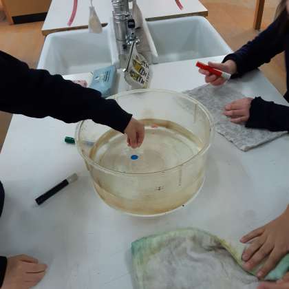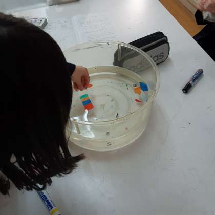 水に浮かぶ絵や文字(科学クラブ)
