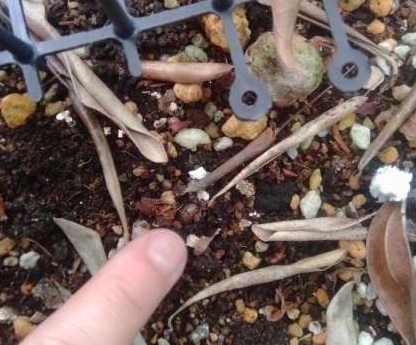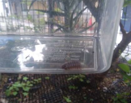 4月21日のお昼2時ころ、家のさくらんぼの木にとまっていたてんとう虫と、さくらんぼの木の根っこあたりにいたダンゴ虫。