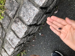 ピンクのつつじ・ダンゴムシ・びわ(小さな実がついてます)。