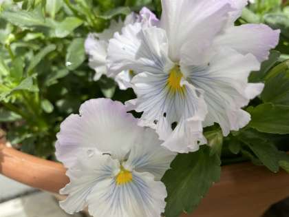 紫と白のパンジーです。