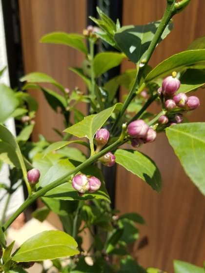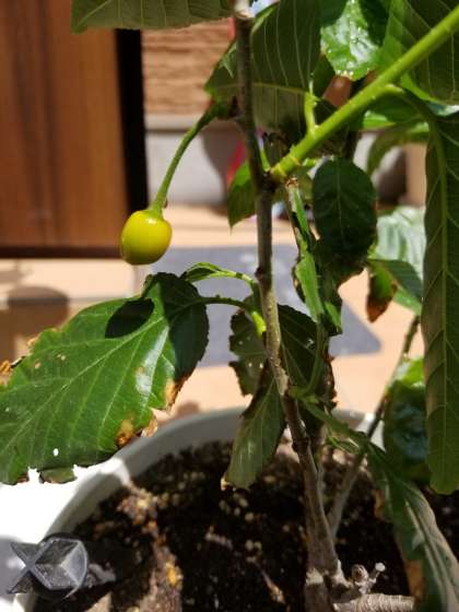 ライムの花とさくらんぼ、いちじくの実が玄関先にできました。