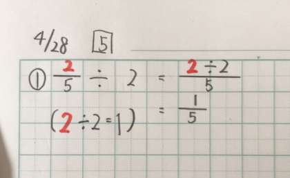 問題1〜10は、分子を整数でわりれるので、1枚目の写真のように、【分子÷整数】で求めました。