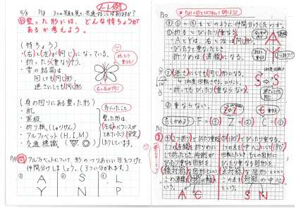 算数と道徳のノート例は、後日印刷したものを配布します。
