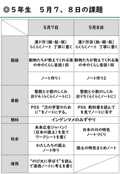 5年課題一覧(5月7,8日分)