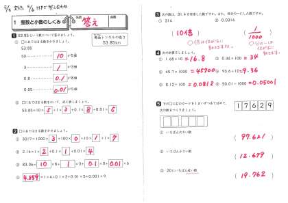 5年 算数 整数と小数のしくみ(答え)