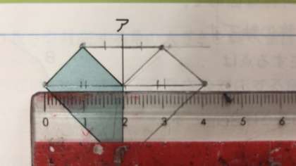 長さを等しくとるために、2cmなら倍の4cmを点から点まではかり、結びました。