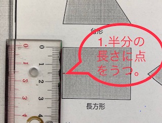 まず、半分の長さをはかります。
