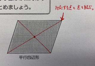 平行四辺形は、点対称な図形です。