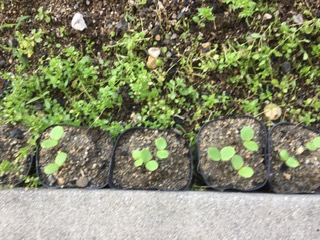 ヒマワリの子葉の間から出てきた小さな葉が少し大きくなりました。