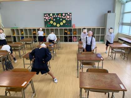 休み時間は雨だったので、教室で今里小学校オリジナルの「姿勢体操」をしました。アンパンマンの曲に合わせてします。背筋が伸びる動きの時に、「うぅ〜」と思わず声を出す子がいてました。緊張して力が入っていたのでしょうね。