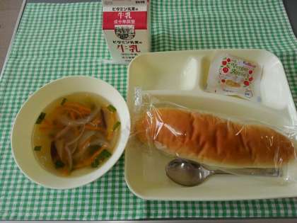 <牛乳 大型コッペパン ハムと野菜の中華スープ>