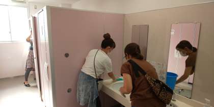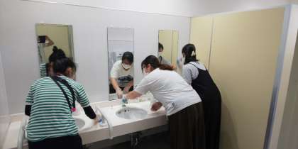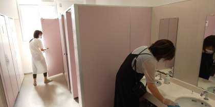 トイレのふき掃除や手すり、床などの消毒を行っていただきました。