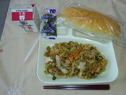 <牛乳 大型コッペパン 焼きそば>