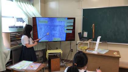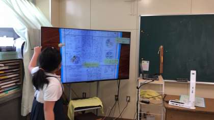 書画カメラで写したものを全体の前で説明し、書き手も「意図した内容を伝えることができた」とうれしそうに話していました。