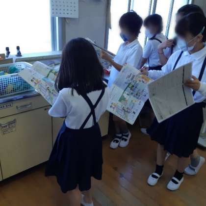 家庭科室を探検してこれからの学習に使うものを確認しました。