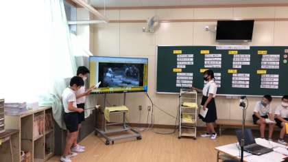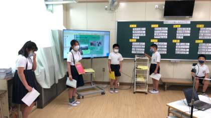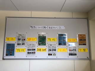 平和学習でこれまで調べてきたことを、観点ごとに8グループに分かれて説明しました。