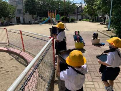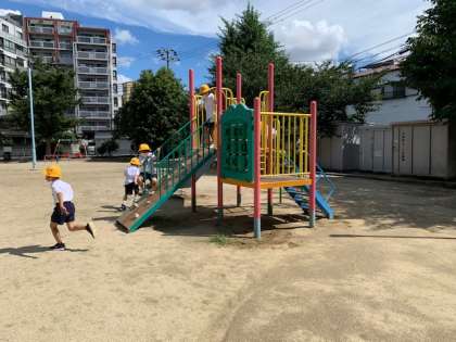 その後は、友だちと仲良く、遊具を使って遊びました。