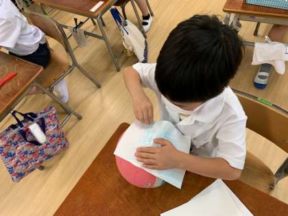 先週より、図画工作科で「こすって ちぎって はって」に取り組みました。