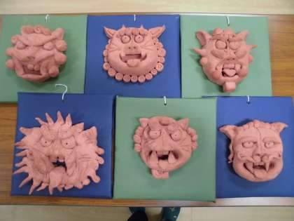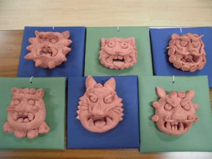 土粘土で、シーサーを作りました。