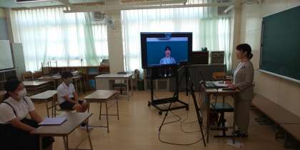 児童代表のお話や、夏休みの思い出のインタビューも遠隔で。