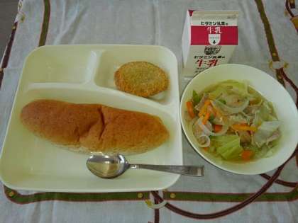 <牛乳 ライ麦パン チキンレバーカツ スープ>
