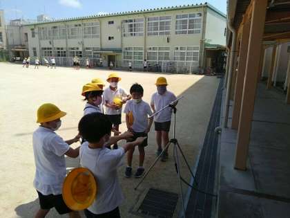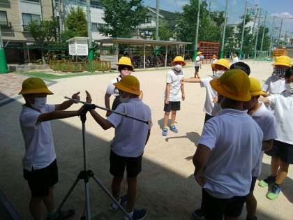 熱中症対策で、運動場にミストを設置しました。