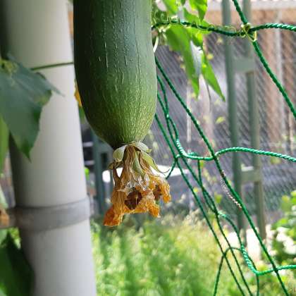 先生から「ハチはヘチマやツルレイシが呼んでいるんです。」