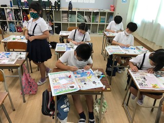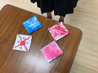 今週の図画工作の授業は、絵の具チューブからそのまま紙にのせて、紙の上でまぜ、偶然にできた色を楽しみました。