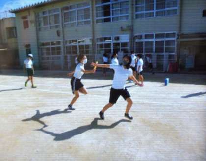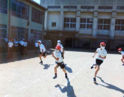 「リード!」のかけ声で、次の走者は走り出し、バトンを渡す。