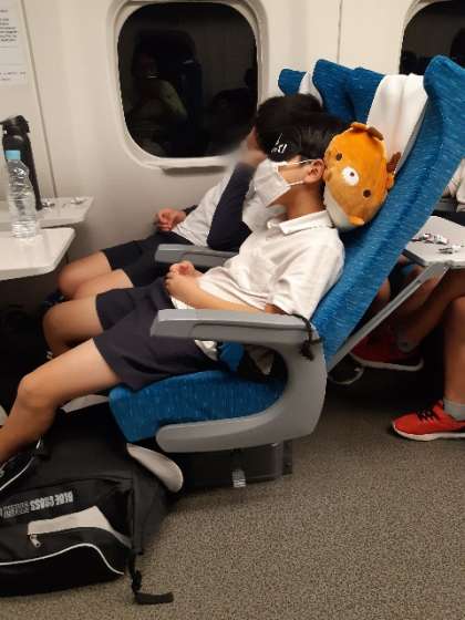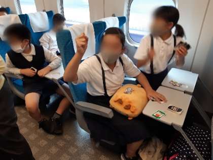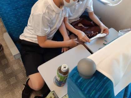 車中ではゲームをしたり、お土産を見たり、眠ったり…自由に過ごしています。
